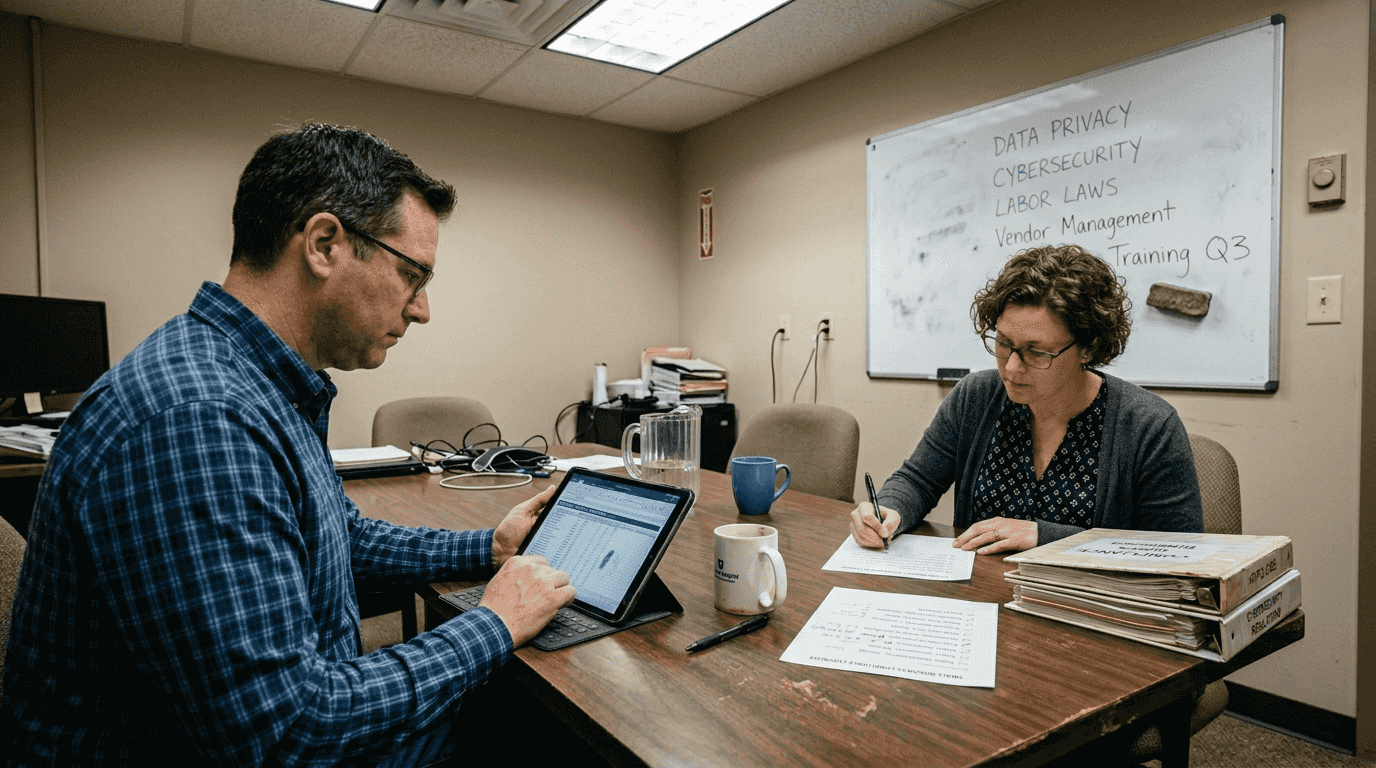 Pro Tip: Schedule quarterly compliance review meetings where department heads verify checklist completion and identify emerging regulatory risks before they become violations.